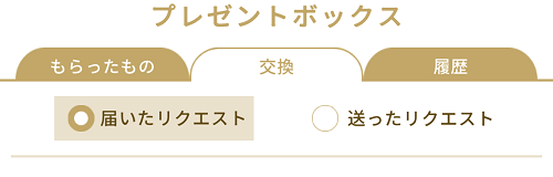プレゼントボックスの【交換】タブより届いたリクエストをご確認ください