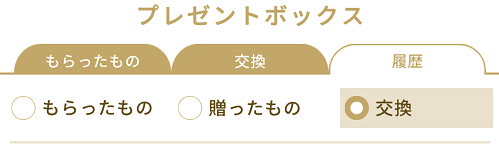 プレゼントボックスの【履歴】タブより交換の内容をご確認ください