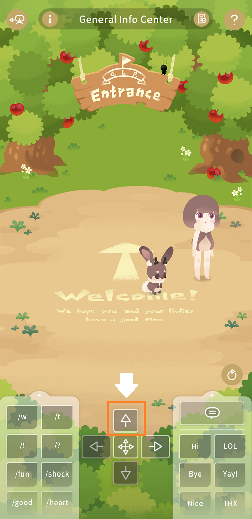 3.안내 공원에 도착하면 G.L.L.게이트 간판 혹은 ↑ 키를 탭하세요.