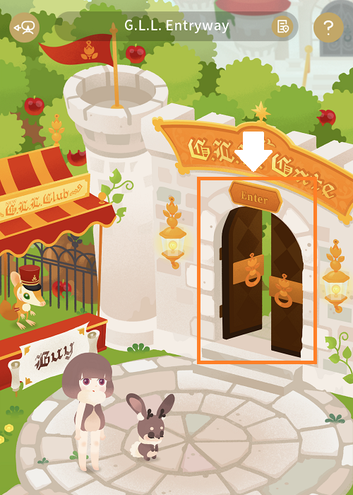 게이트 아래의 문을 탭하면 G.L.L.성 안으로 이동하실 수 있습니다.