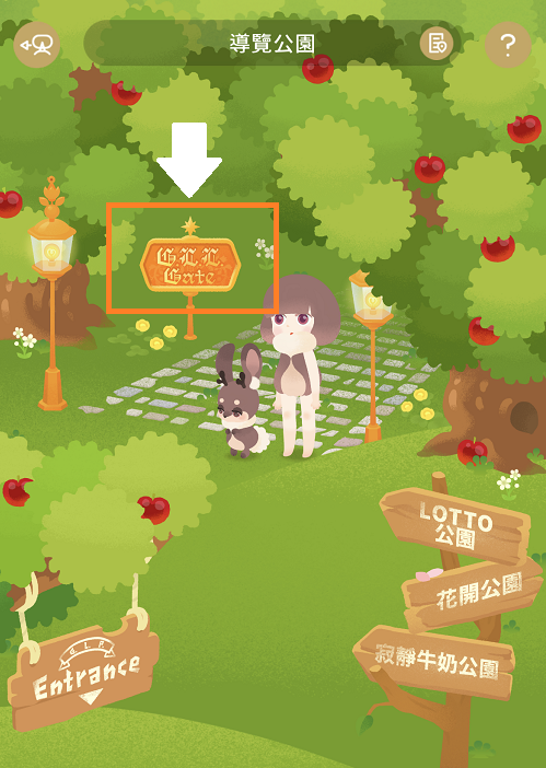 3.抵達導覽公園後點擊G.L.L. Gate的看板或↑按鍵