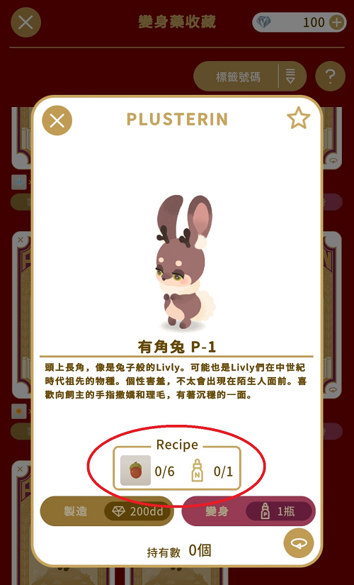 若因無法製造變身藥水或變化藥水等而感到困擾時,請點擊並確認【配方】吧!