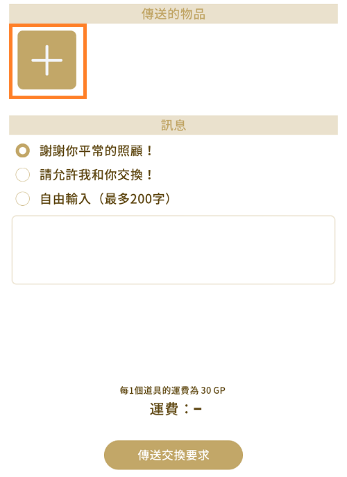 3.點擊欲傳送的道具後,【傳送交換要求】