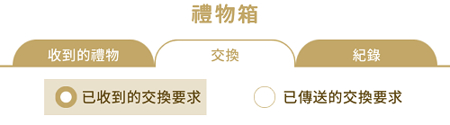 請從禮物箱的【交換】頁籤中確認已收到的要求